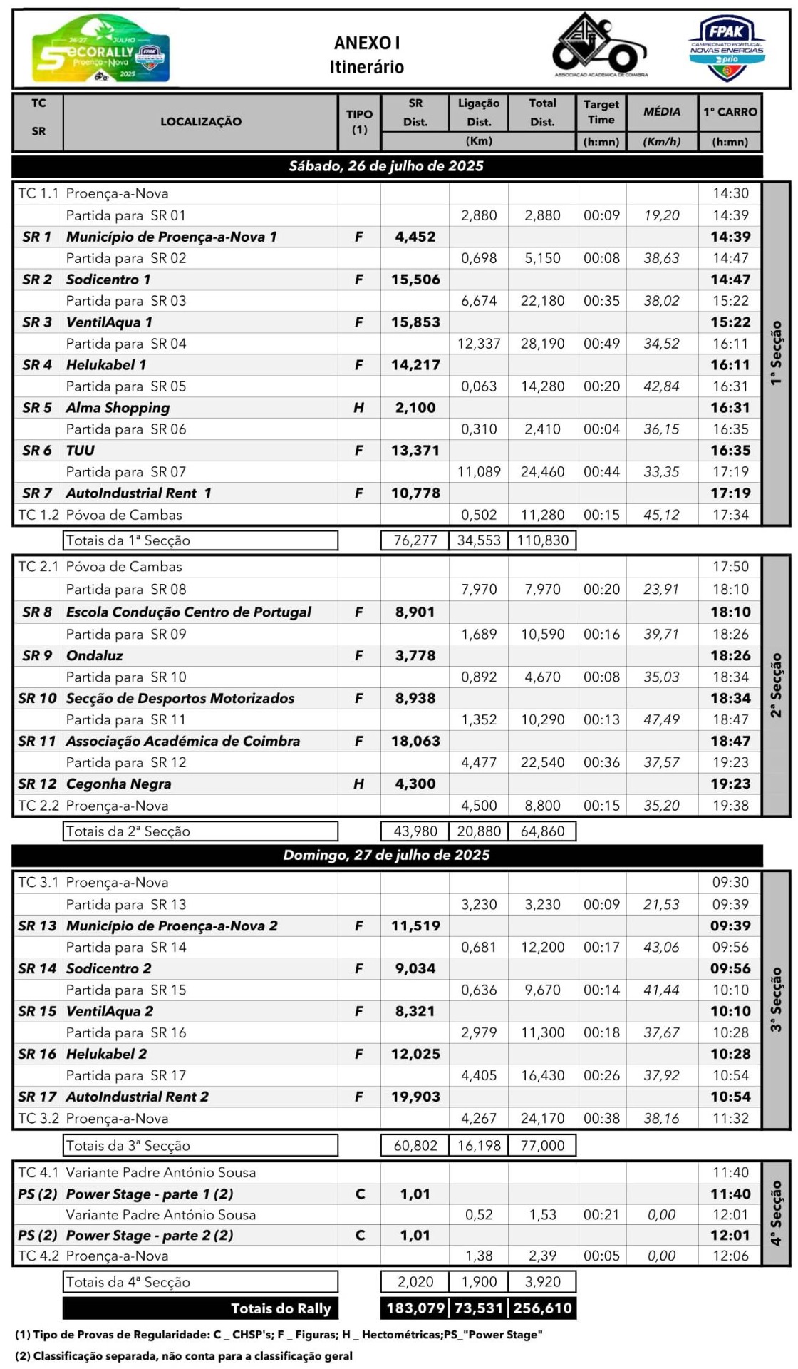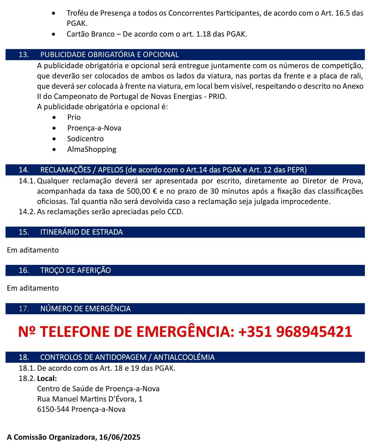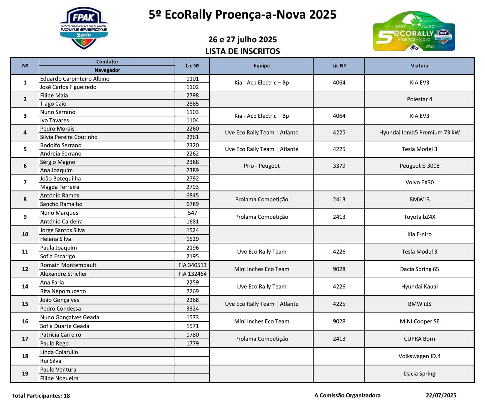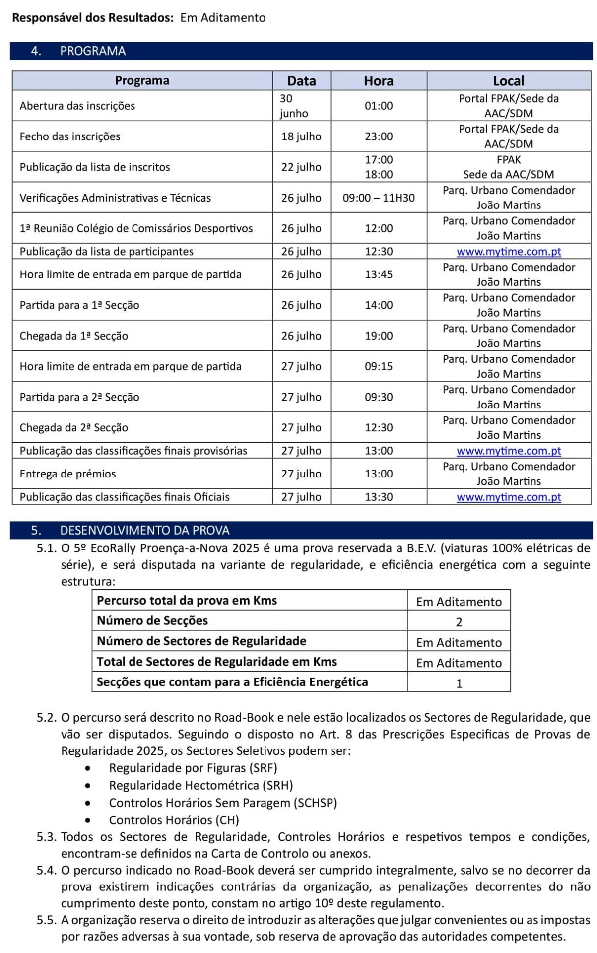 Lista de Inscritos + Aditamento N.º 2 + Aditamento N.º 1 + Regulamento Particular + Itinerário + Tabelas